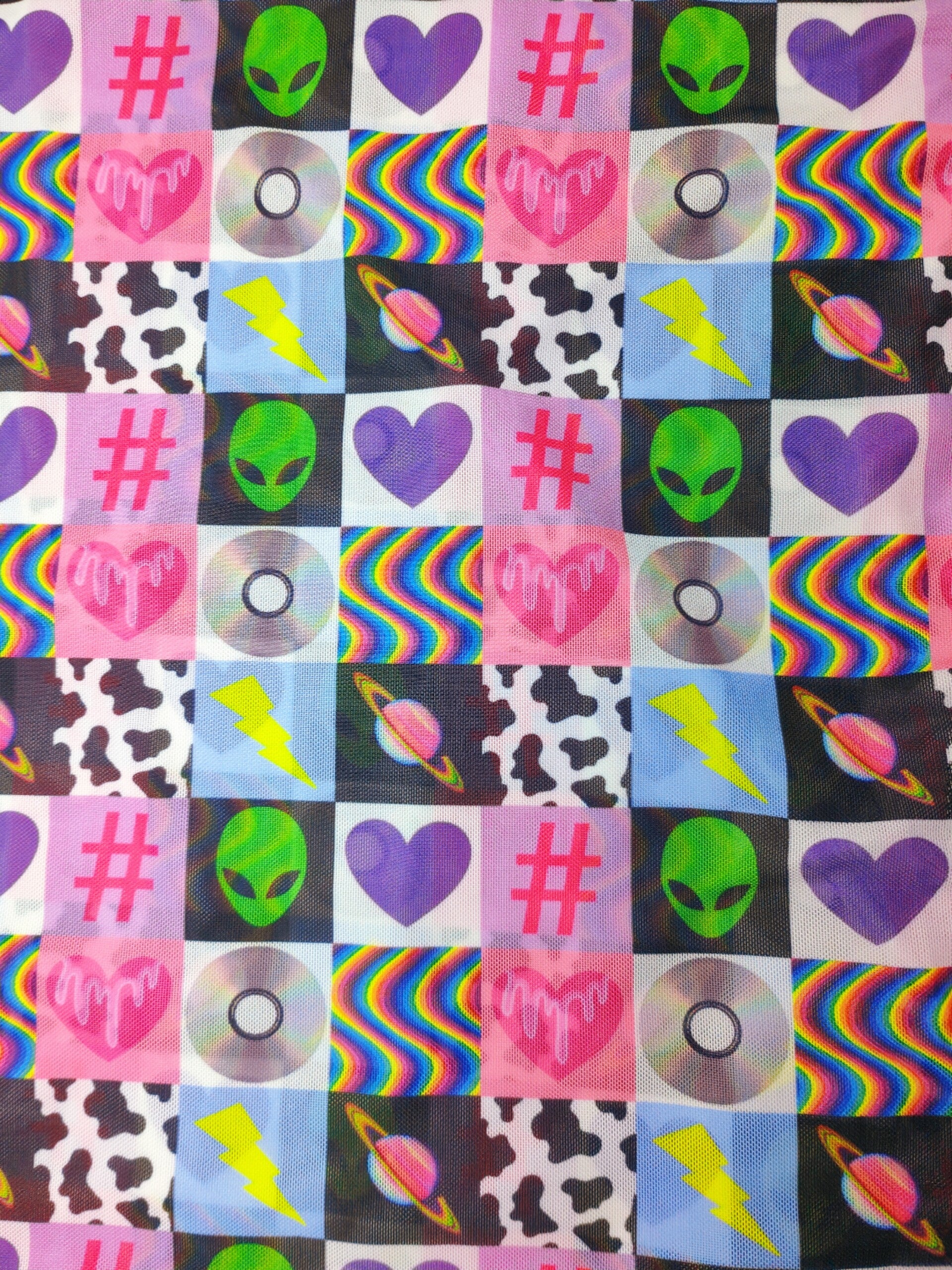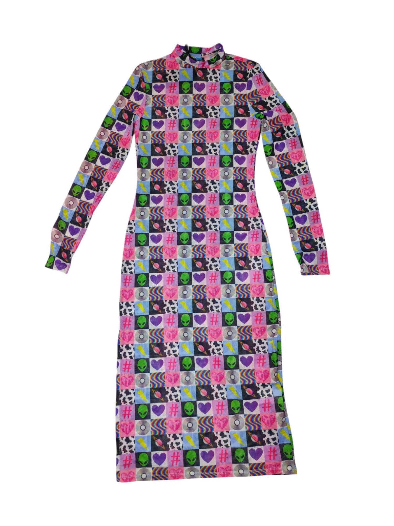 Vestido midi se puede hacer más corto, de rejilla multicolor estilo festival primavera.